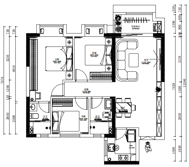 入戶玄關,寬敞大氣,進出更加從容餐客廳一體化,明朗闊綽,陽臺引美景入室雙臥朝南,南北通透,清風陽光穿堂而過書房可改造成臥室,多功能空間,生活更多選擇主臥套房設計,步入式衣帽間,更多奢華享受