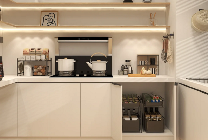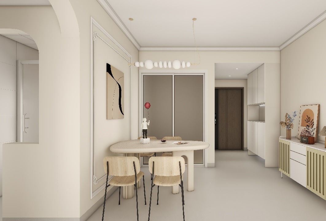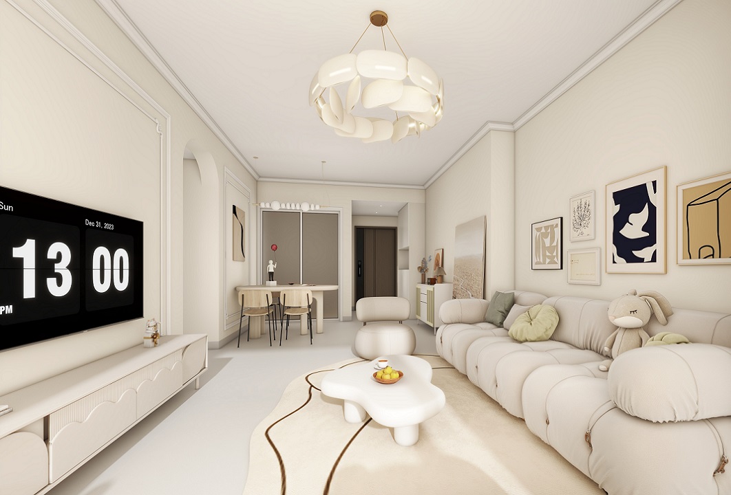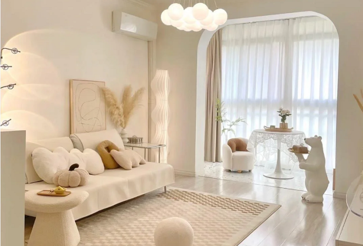 色彩方面,現代奶油風強調淡雅、溫和且略帶復古感的奶白色調,這種色調猶如新鮮奶油般溫潤細膩,營造出寧靜、和諧的空間氛圍。通常會搭配淺木色或米灰色等相近色調,以此來強化整體空間的統一性和連貫性。
