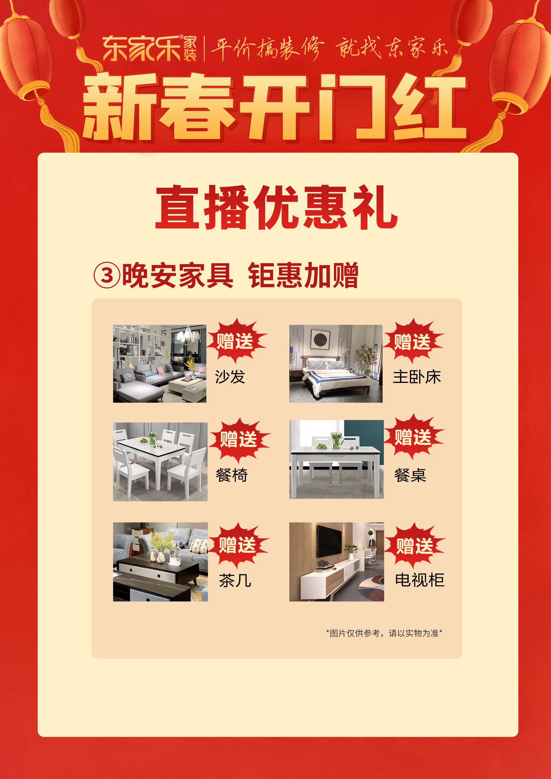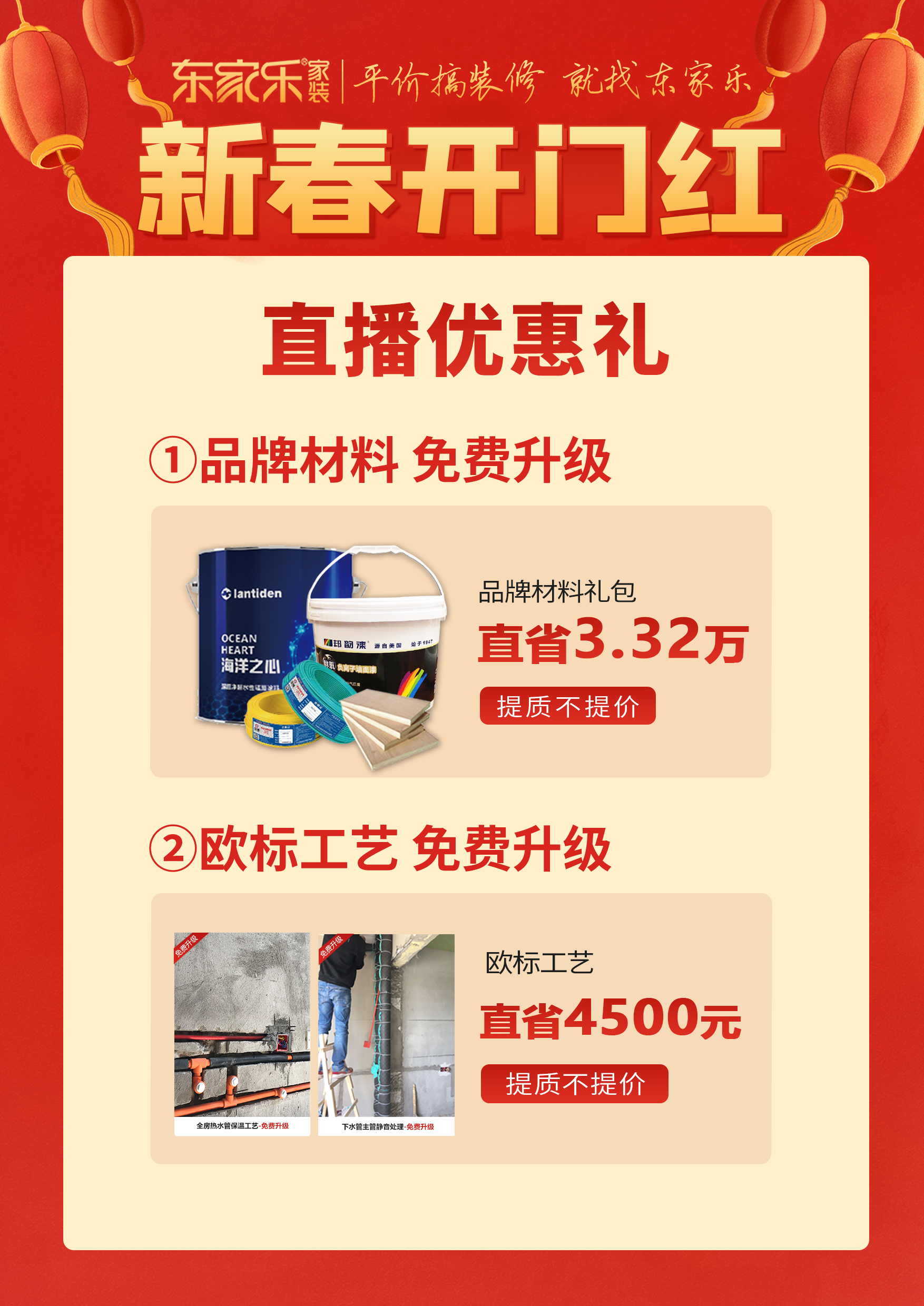 3、同時可享受品牌材料免費升級,簽定施工合同即可領取所有直播優惠禮。