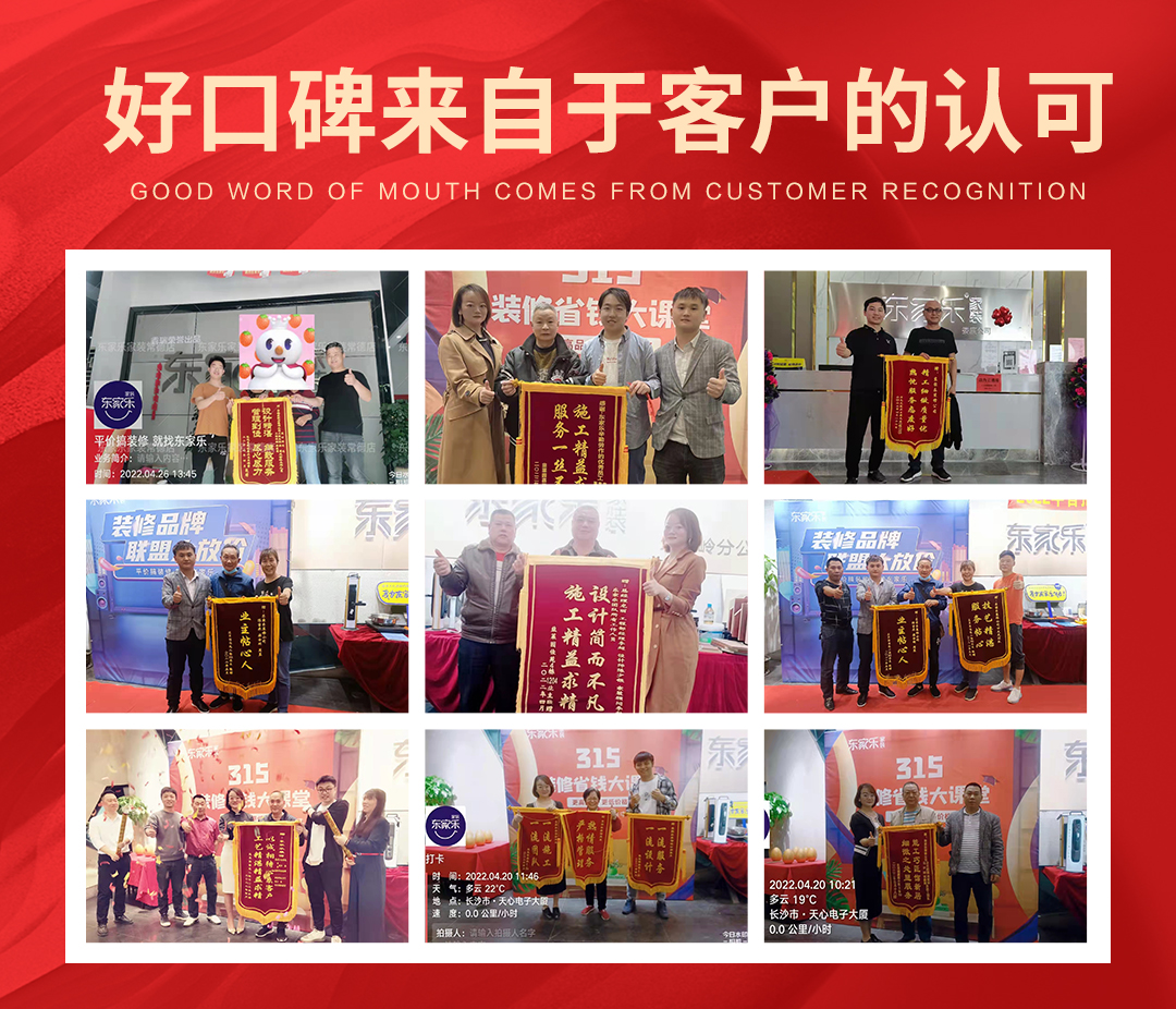 我們買任何東西都比較看重品牌,同時更加看重口碑,好口碑來自于客戶的認可。而在選擇裝修公司的話題上,大家也是喜歡有口碑的,正是東家樂家裝真正在眾多裝修公司中脫穎而出,腳踏實地一步一步通過客戶的好評積累做到湖南口碑較好的裝修公司的真正原因。