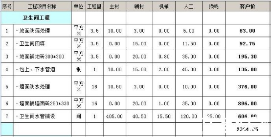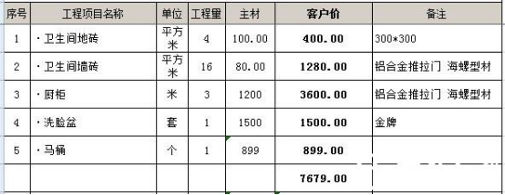 3.5平米基礎(chǔ)主材預(yù)算價格表