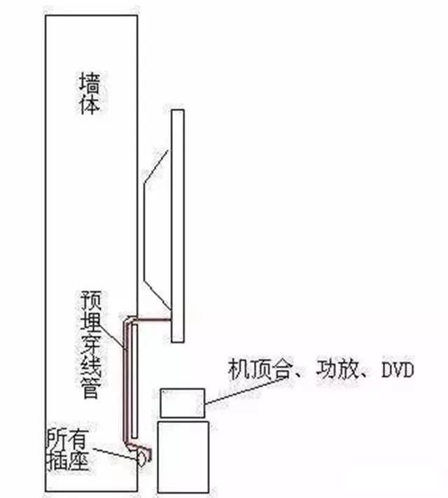 另外一種是做壁掛電視,或者嵌入式電視,將插座隱藏在電視后面,用電視遮擋。插座設(shè)置在電視的下部左右兩側(cè),方便控制開關(guān)。不可設(shè)置在電視的壁掛架安裝區(qū)。插座高度90-1.1米。