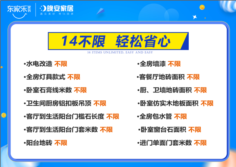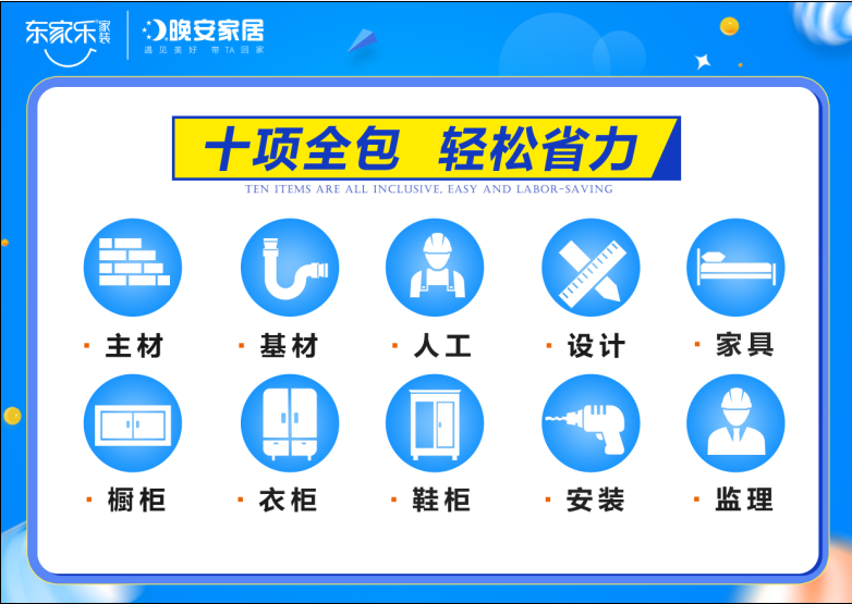 結(jié)語(yǔ):裝修省錢(qián),2020再升級(jí)!如果您對(duì)東家樂(lè)家裝各方面滿(mǎn)意,加贈(zèng)品牌家電,家具大禮包。加贈(zèng)晚安品牌家具10件套,包括沙發(fā)、主臥床、餐桌、餐桌椅、茶幾、電視柜。