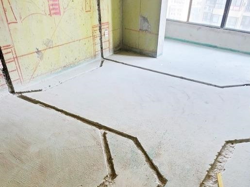 3、在地面上開溝槽時,一定要注意地面的類型。例如地面上安裝有地采暖時,此時是堅決不允許在地面上開溝槽的。如果地面上沒有地采暖,那么我們在地面上開溝槽的時候,深度一定要控制在后澆層的混凝土內,不能夠破壞到結構板。