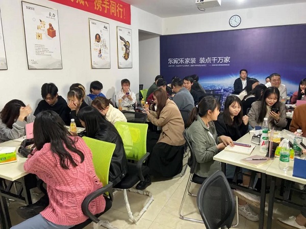學員們聚精會神的在聽取羅總、王總的課程,在課程進行中羅總、王總與學員們進行互動解答學員在量房、設計、溝通、工藝中遇到的難題。