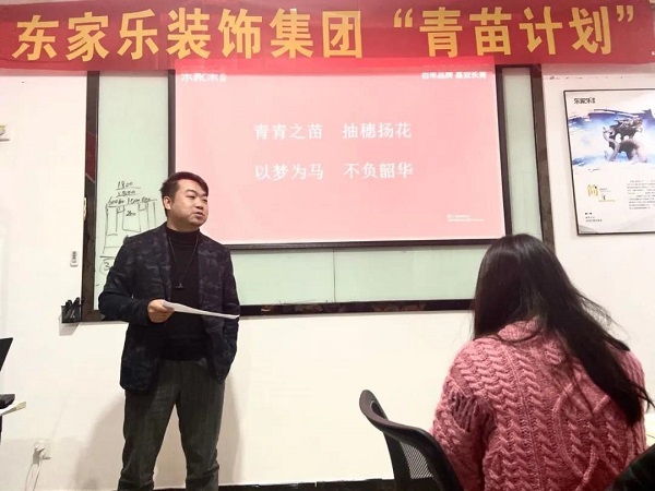 本次培訓在于2020年10月23日(周五)下午13:00在東家樂家裝望城分公司會議室進行,開場集團人力資源部:謝斯麗(青苗-班主任)致辭歡迎各分公司選拔的優秀助理設計師并介紹“青苗”培訓內容。